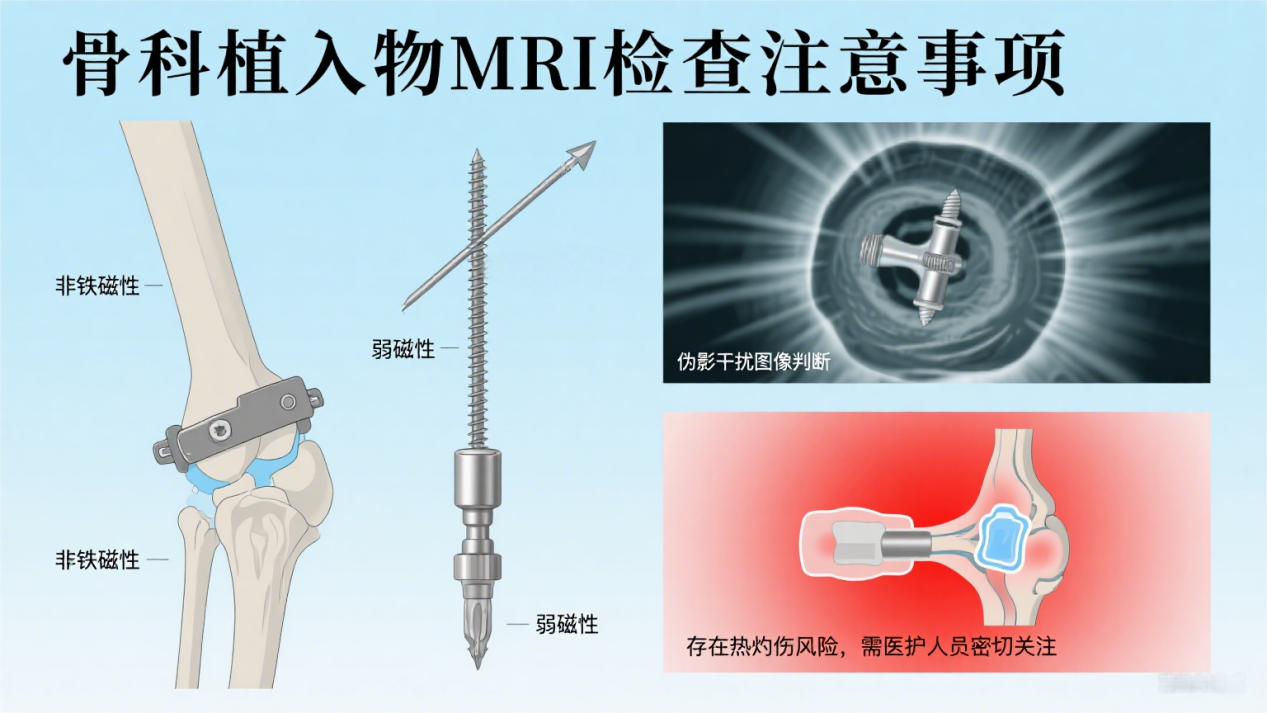 钢板、钢针、螺钉、人工关节这些骨科“常客”,大多是非铁磁性或弱磁性,一般不会乱动。