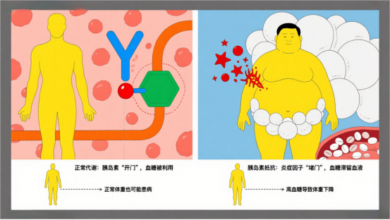 糖尿病,特别是我们常说的2型糖尿病,确实常常和肥胖“形影不离”。这背后最大的机制是“胰岛素抵抗”——肥胖人群体内脂肪细胞分泌大量炎症因子,让胰岛素“打不开门”,血糖自然居高不下。但这并不代表所有胖人都会得糖尿病,也不代表所有糖尿病人都是因为“吃多了”才变胖的。有些人糖尿病初期体重还很正常,甚至在血糖高到一定程度后还“莫名其妙地瘦了”。更重要的是,有一些患者“糖尿病 + 肥胖”的组合,并不是生活方式问题,而是身体里出现了更深层次的病理变化。