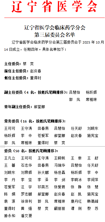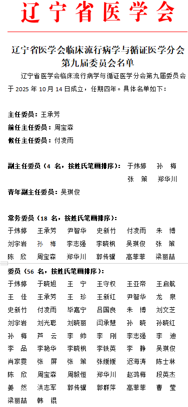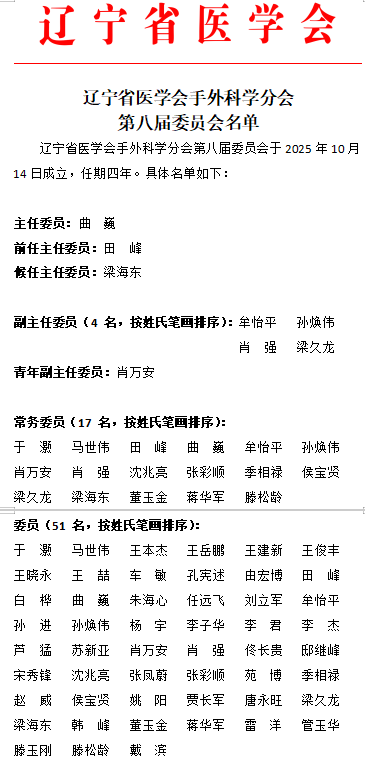 辽宁省医学会组织工作委员会秘书组织管理部主任:刘嘉